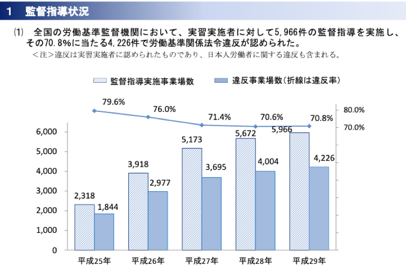 労働基準監督署は、全国各地の技能実習生を雇っている7000以上の企業で労働基準法や規則違反があったことを確認している。日本政府は技能実習生の置かれた状況や問題を十分に認識している。それが2017年に技能実習法が改正された理由の一つだった。しかし、その法律を実際の現場で企業に守らせることはできていない。